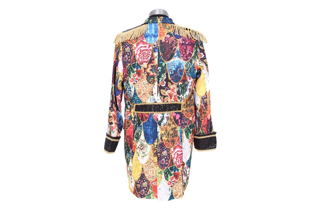 Luxe heren carnavalsjas met retro curvesprint. Luxe uitvoering.