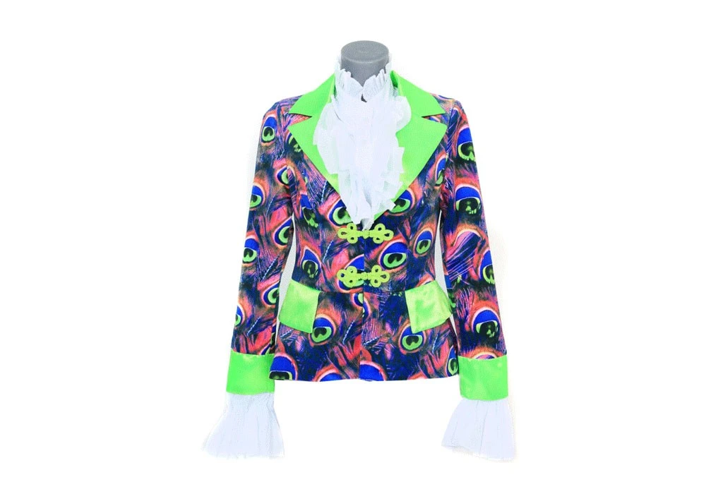 Luxe damesjasje met pauwenprint, mooie zachte stof.