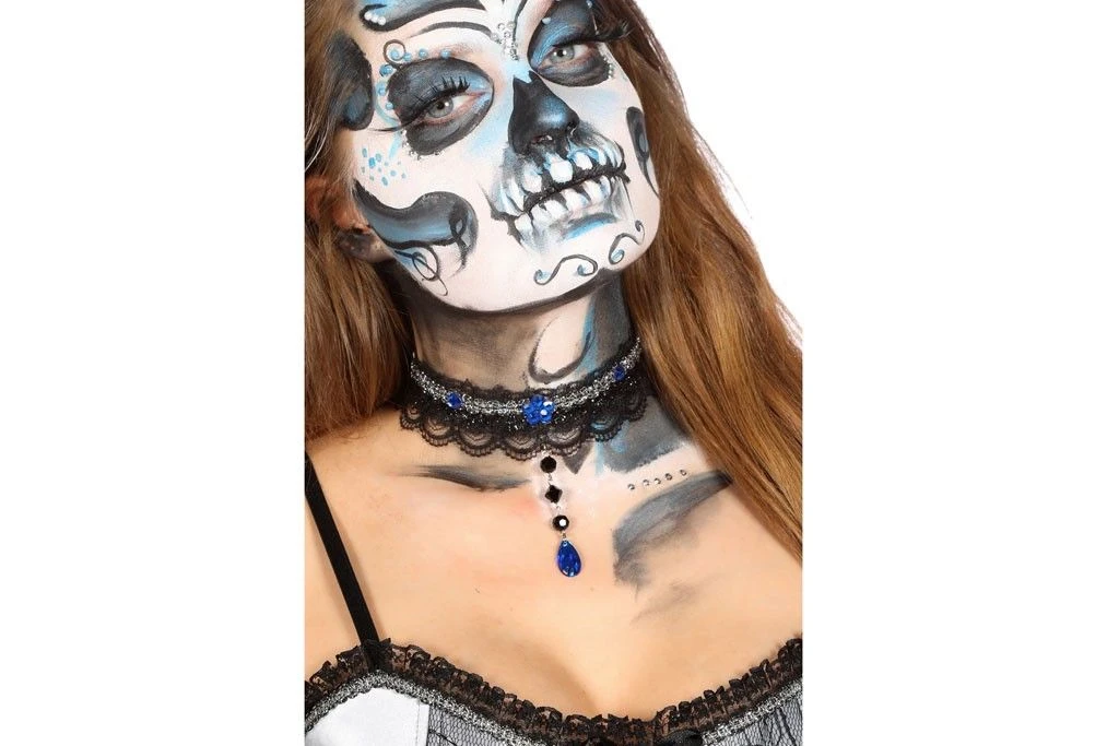 Choker Zwart Met Blauwe Stenen