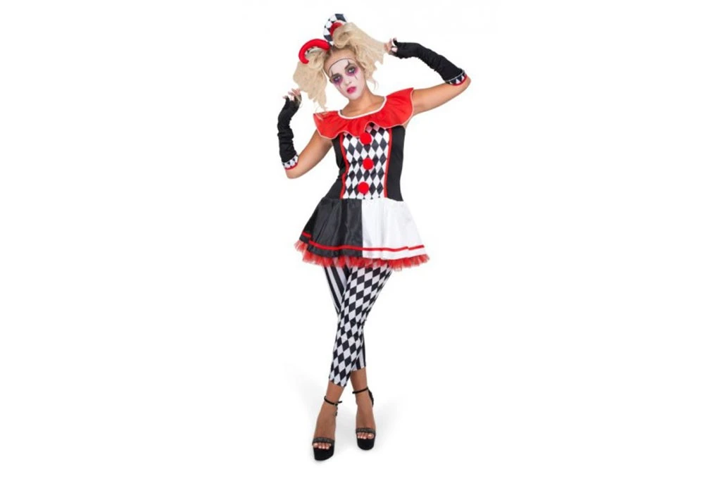 Clownsjurkje Jester, incl. legging, haarband en handschoenen. Circus thema feest.