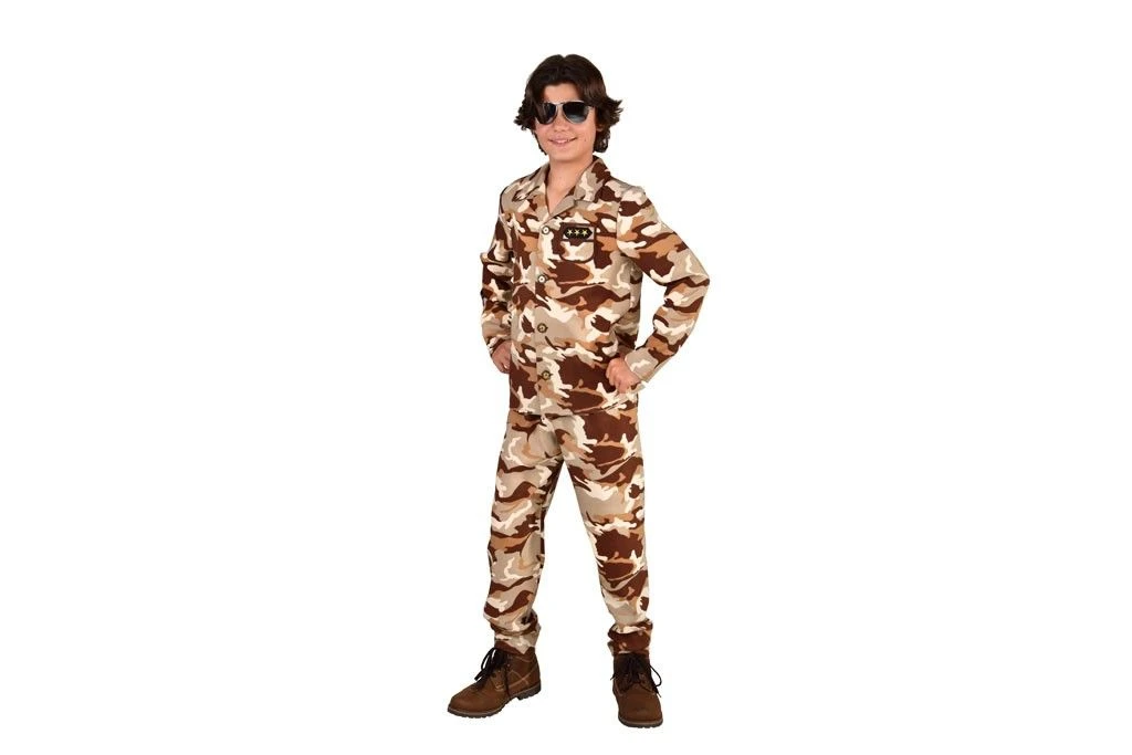 Stoere legeroutfit in desert storm camouflage print, bestaande uit een broek en shirt.