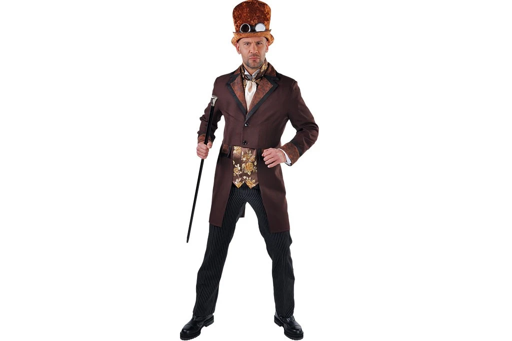 Luxe steampunk outfit voor heren ook geschikt voor Dickens. Bestaande uit een jas met vest en broek. Ook mooi met halloween.