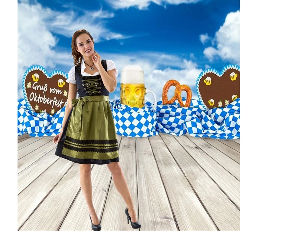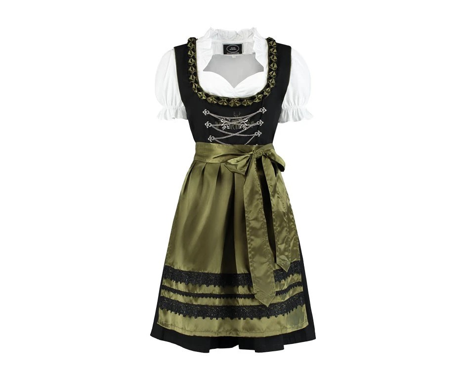 Dirndl jurkje, bestaande uit een jurkje, blouse verstelbaar en satijnen schort. Zeer mooie kwaliteit voor oktoberfesten. Uit de Haus Huberts collectie.