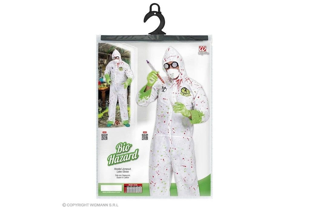 Doctor Toxic jumpsuit bestaande uit een hooded jumpsuit en latex handschoenen. Leuk te combineren met een verpleegster outfit.