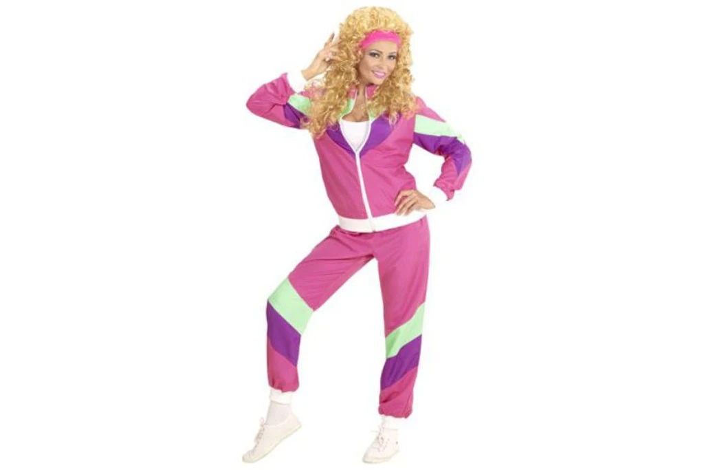 Populair trainingspak voor foute party. Soepel luchtig materiaal. Kostuum bestaat uit broek met elastiek en jasje met rits.