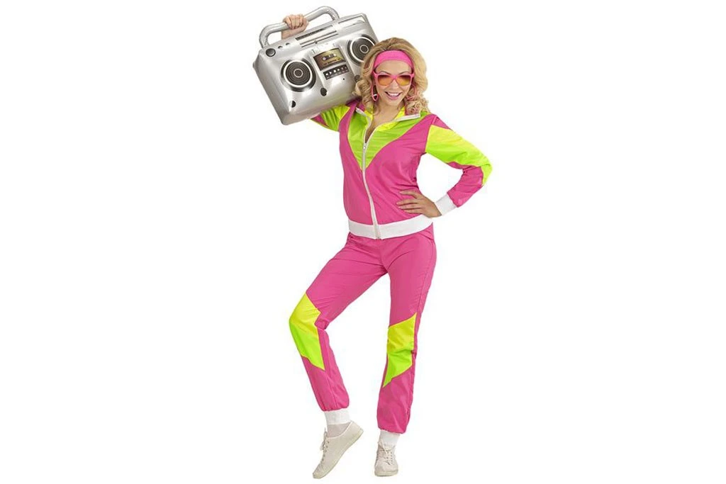 Fout retro trainingspak voor dames erg populair voor foute party, bestaande uit een broek met elastiek en jasje met rits.