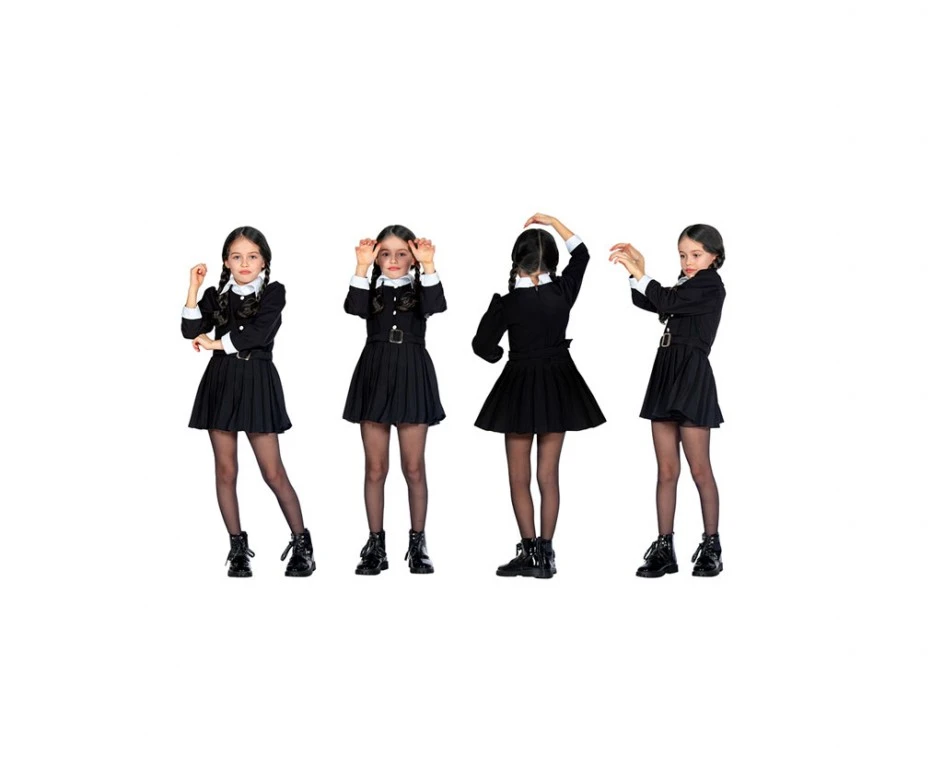 Friday jurkje, Wednesday Addams jurkje look a like. Bekend van de populaire Netflix serie. Wit/zwart klassiek jurkje.