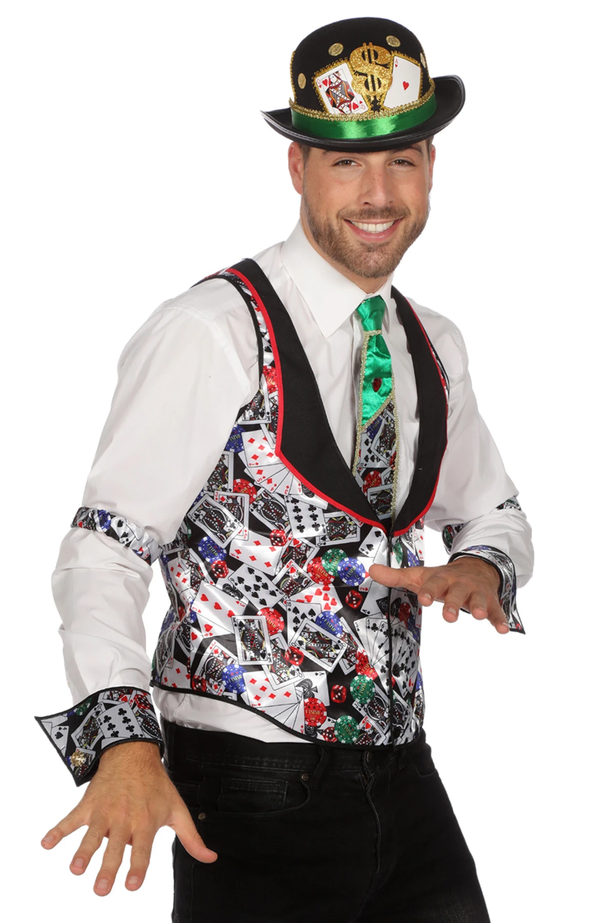 Gilet casino, bestaande uit een gilet en mouwhouders. Leuk als finishing touch bij een poker partijtje.