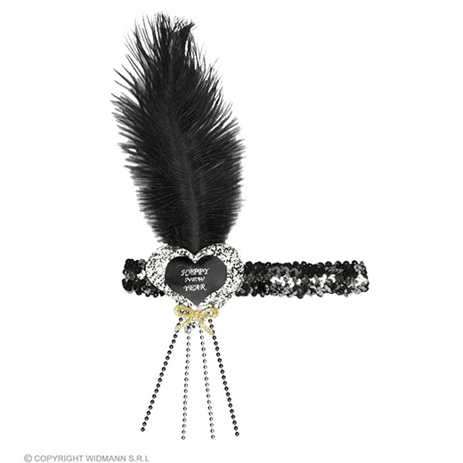 glitter hoofdbandje zwart/zilver happy new year hartje