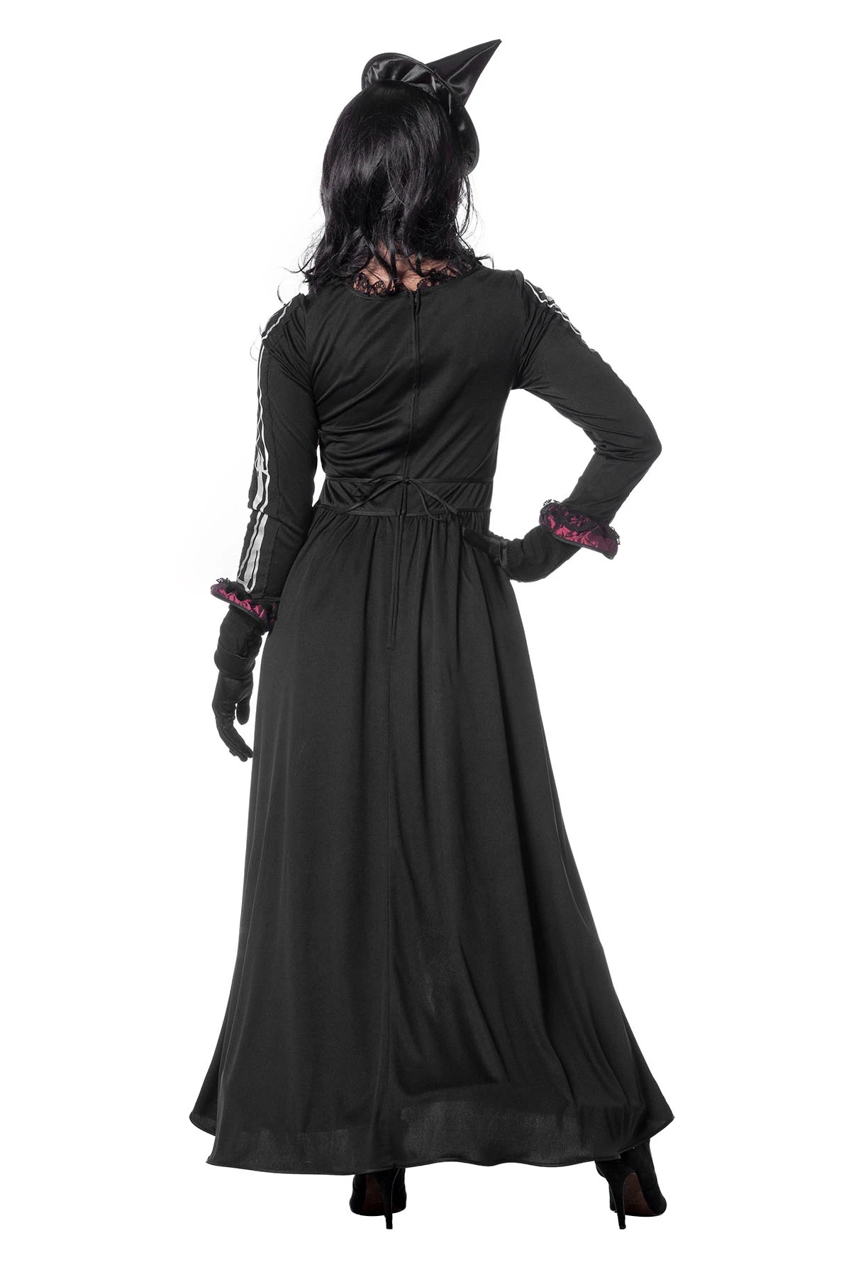 Goddes of Death, bestaande uit een lange jurk met lange mouwen. Leuk voor carnaval of halloween.