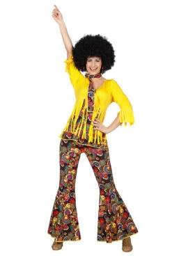 Geel gekleurd hippie broek met Fringe blouse en hoofdband.