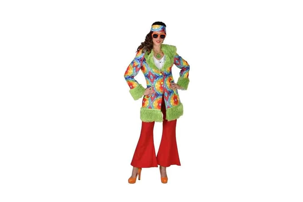 Hippie jas in stof Batik met pluche afwerking. Erg leuk op een flower power party of hippie feest.