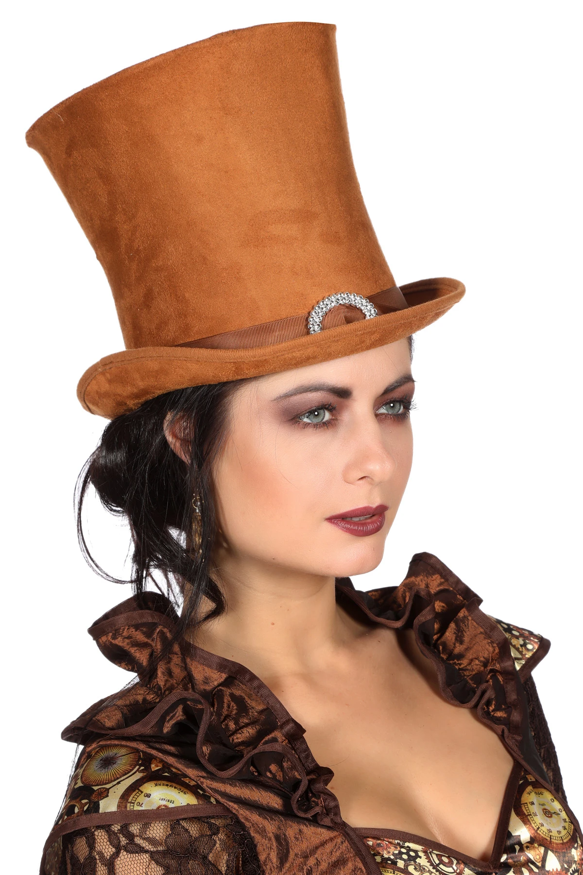 Hoge hoed, in de kleur bruin.