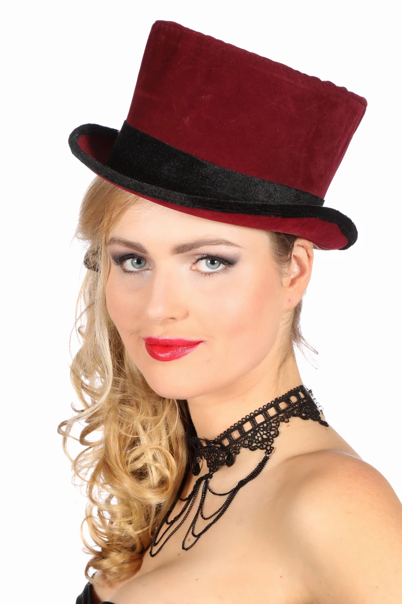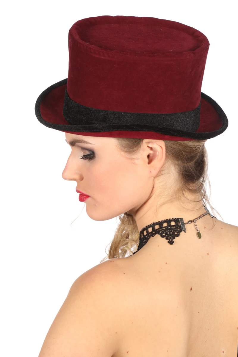 Hoge hoed bordeaux rood.