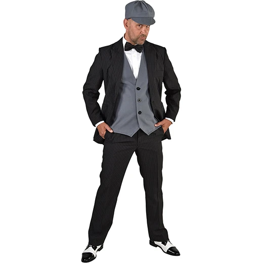 Gatsby kostuum jaren 20 (Roaring 20’s) bestaande uit een colbert, broek, vest, pet. Net als de mannen in de serie Peaky Blinders dragen.