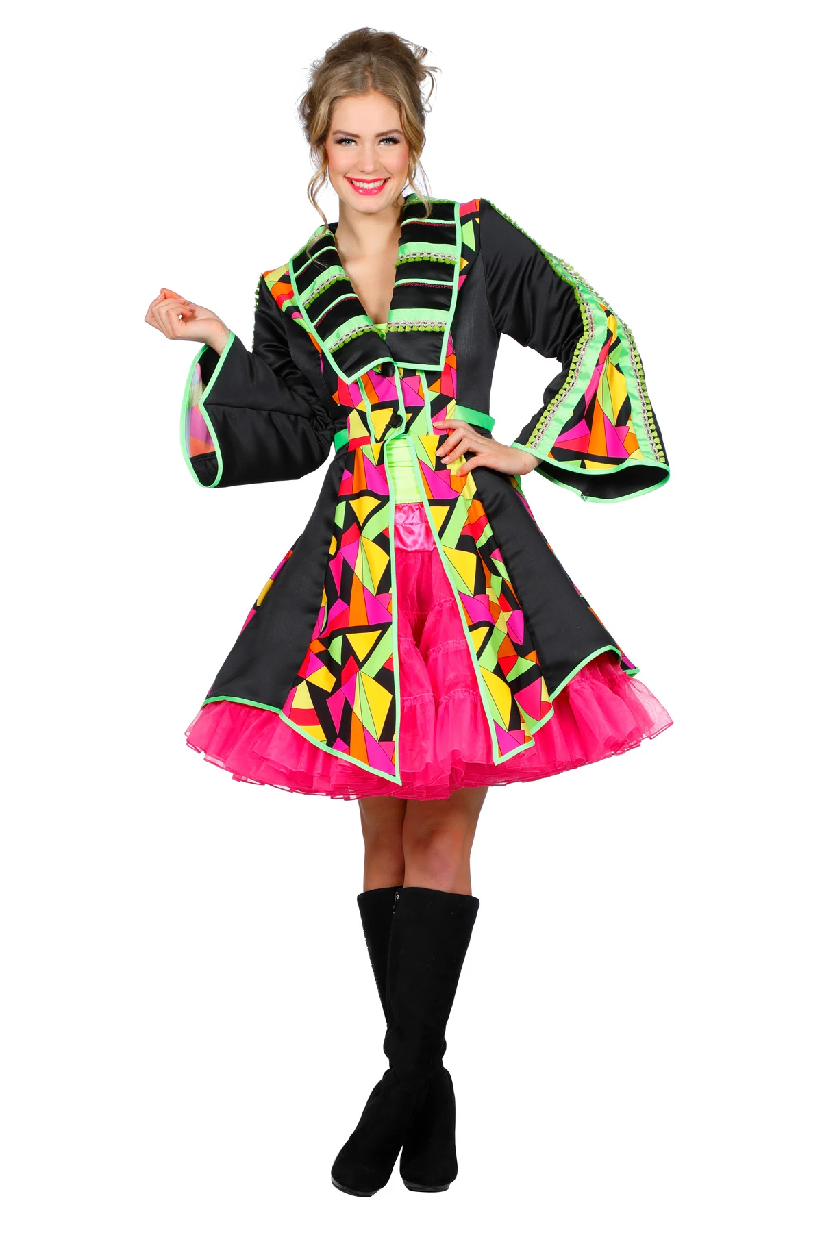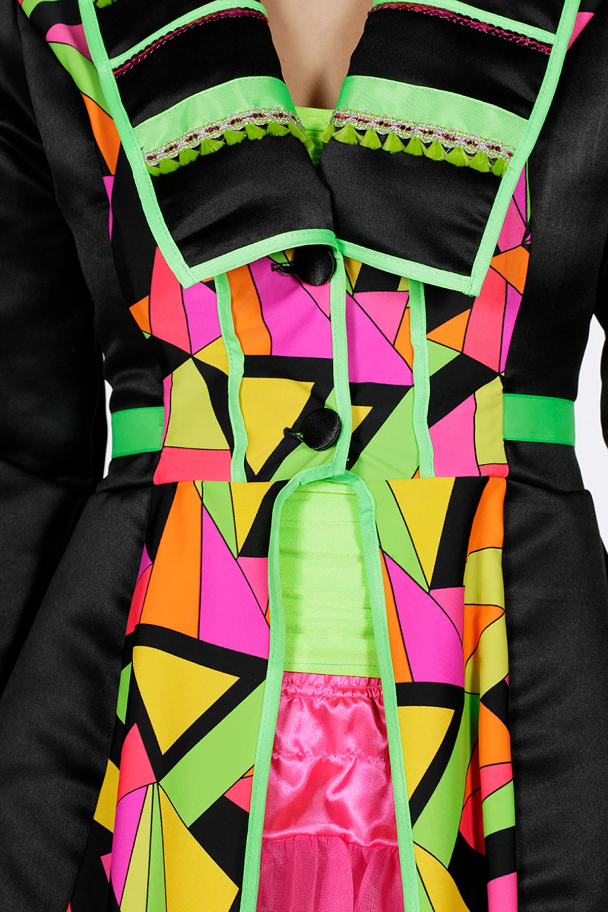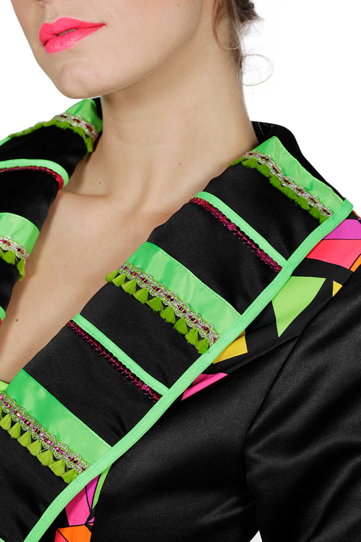 Gekleurde circus jas met lange uitlopende mouwen.