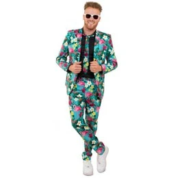 Hawaii kostuum, bestaande uit een broek, colbert en stropdas.