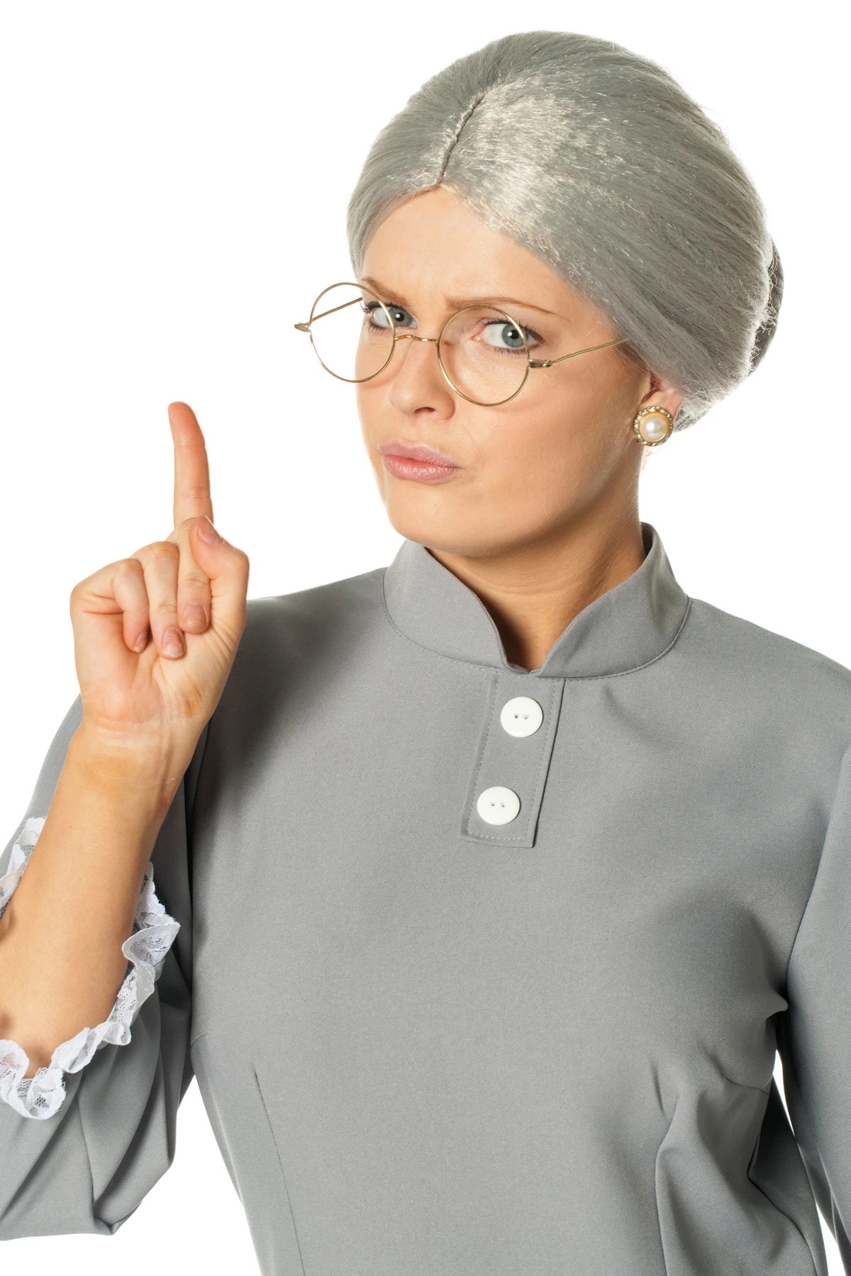 Grijze oma pruik met knotje
