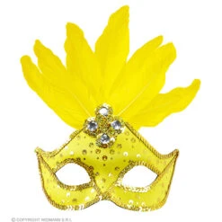 Oogmasker Brazilie Met Veren En Parels, Neon Geel