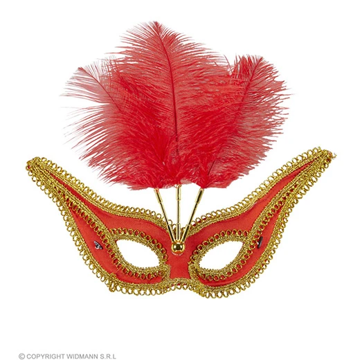 Oogmasker Rood Met Goud En Veren