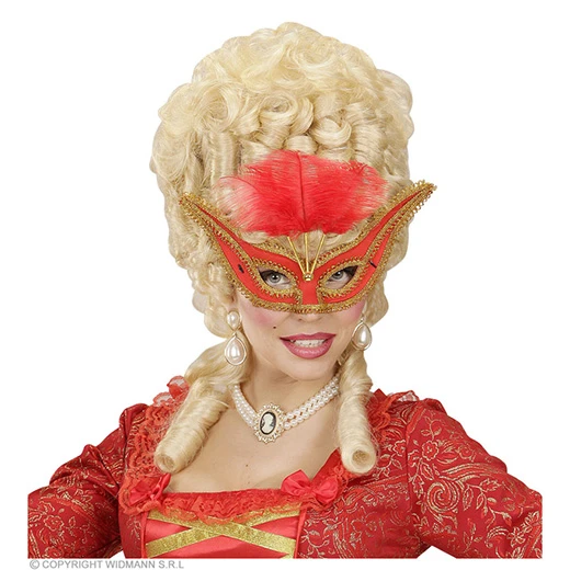 oogmasker rood met goud en veren