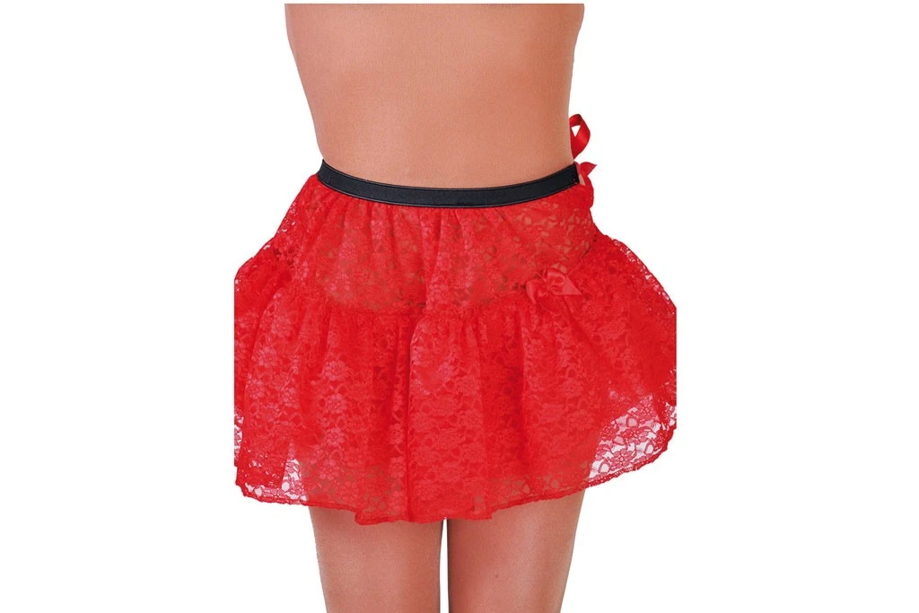 Petticoat kant, verkrijgbaar in wit, zwart en rood.