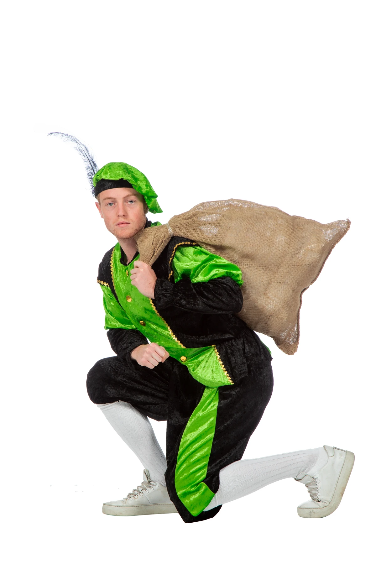 Mooi Pietenkostuum voor heren in diverse kleuren verkrijgbaar. Bestaande uit een broek, jasje en muts.