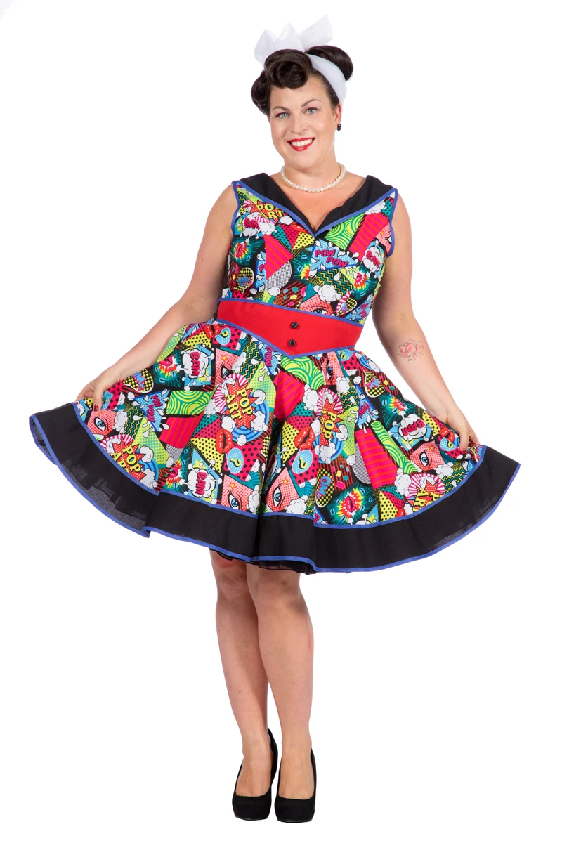 Mooi afgewerkt jaren 70/80 jurkje Rock en roll style. Leuk met Pop-Art print.