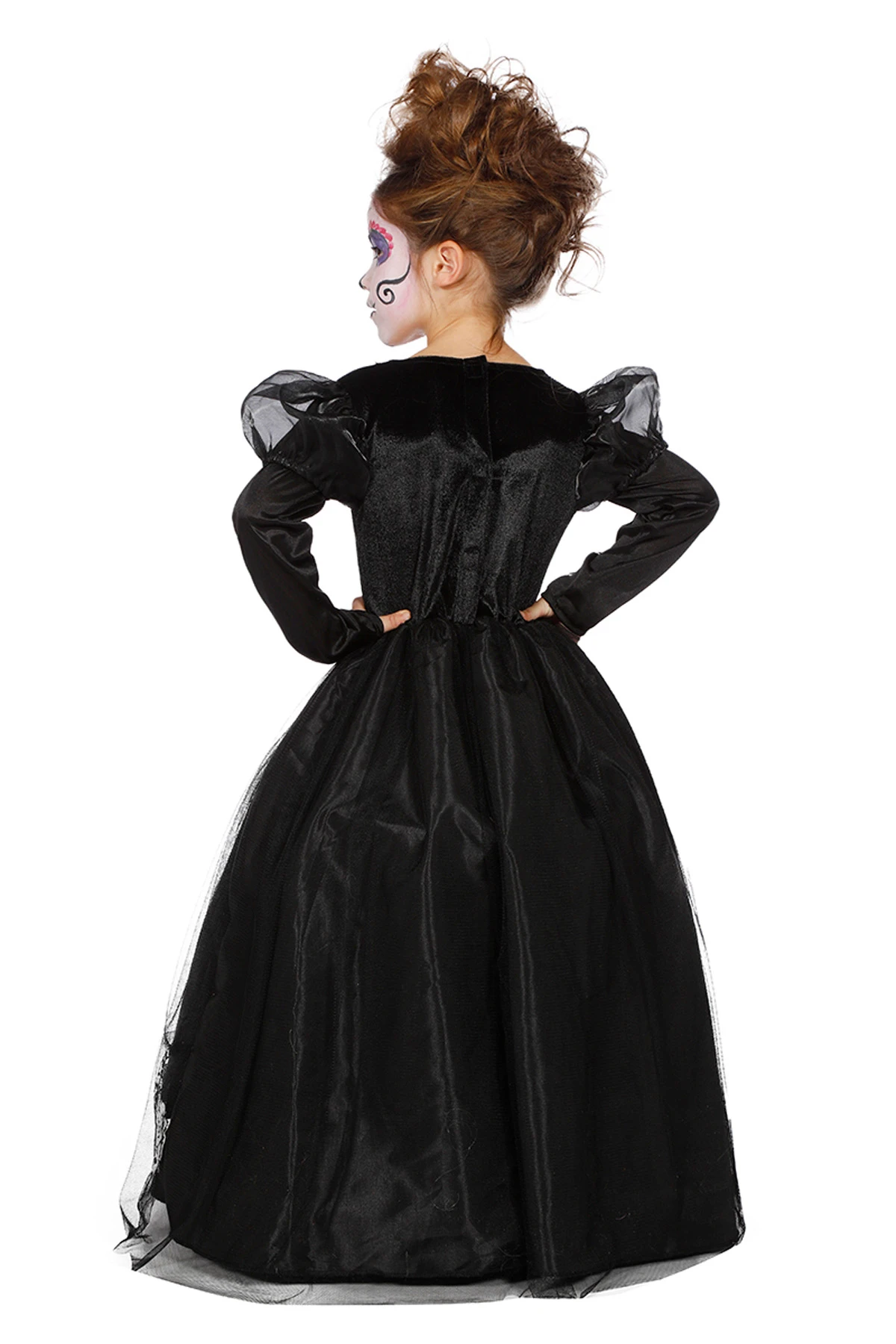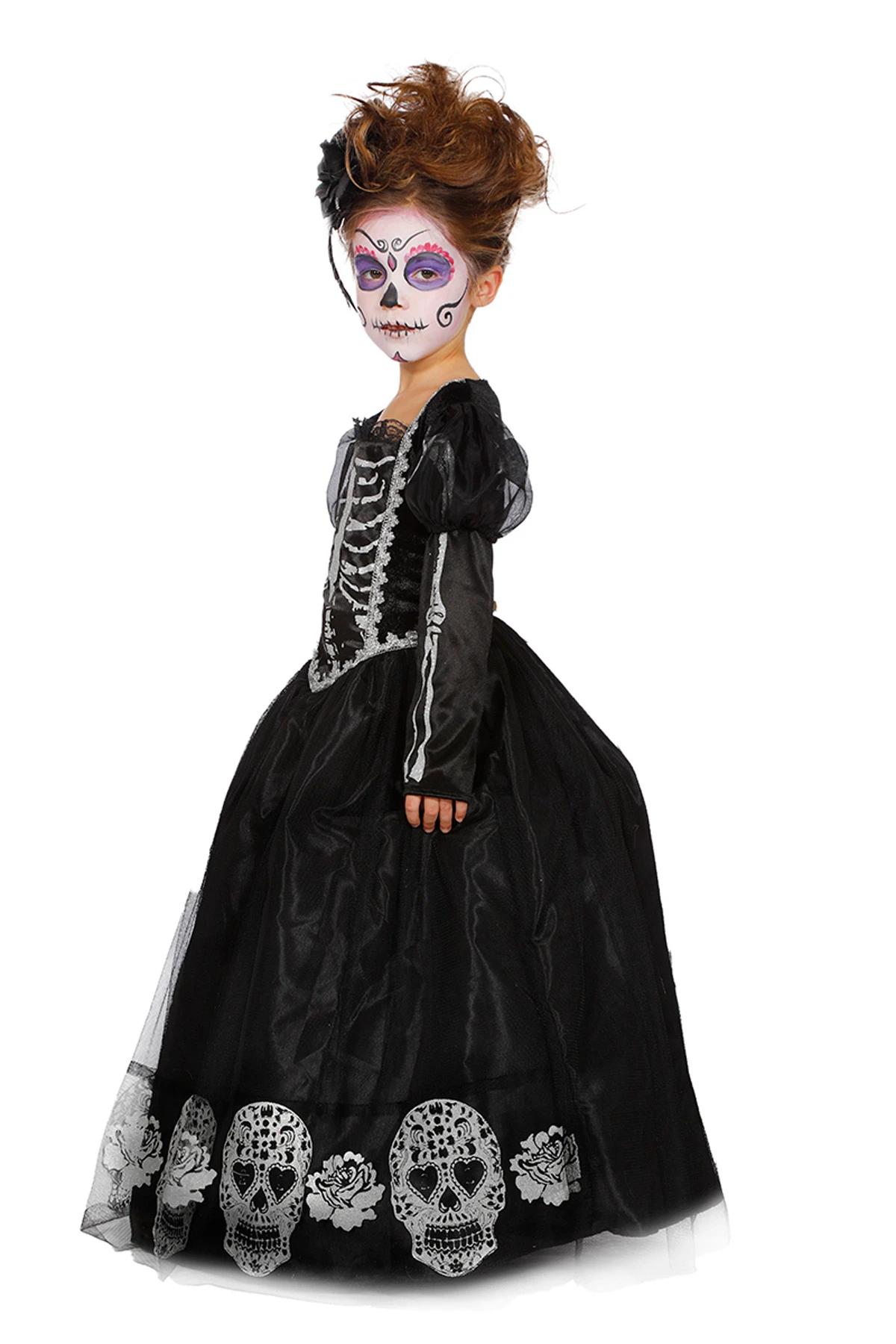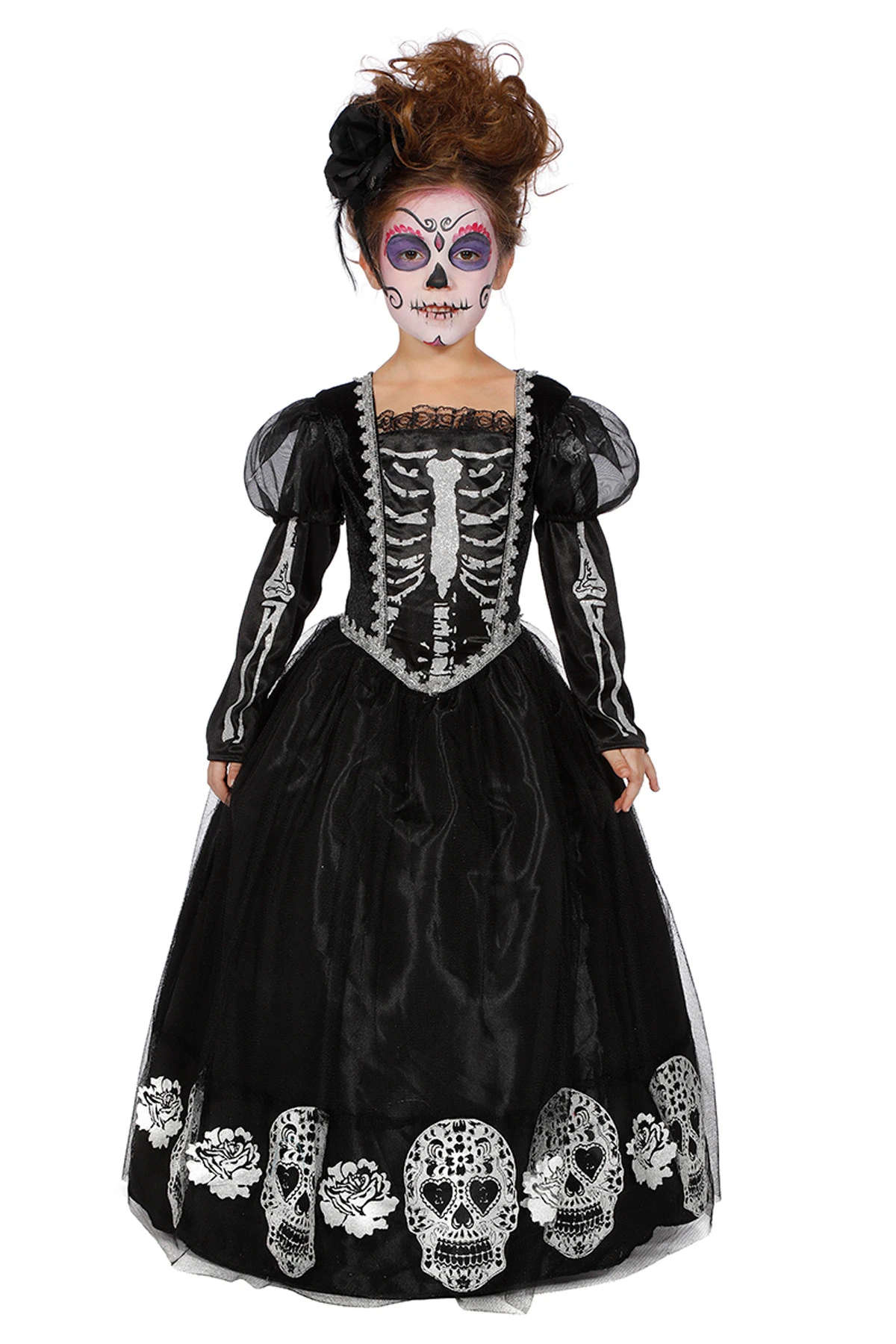 Mooie lange jurk met skelet print leuk voor halloween of carnaval.