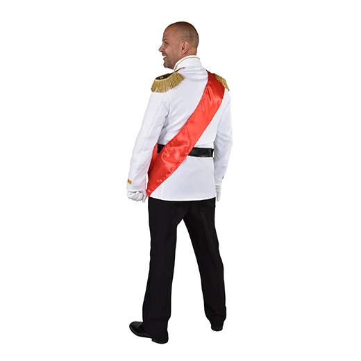 Prins Charming kostuum bestaande uit colbert, riem en sjerp.