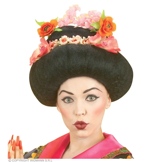 pruik, geisha met bloem (in plastic doos)