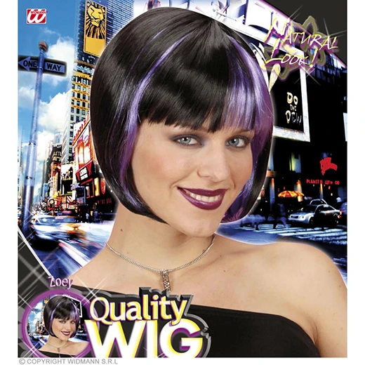 Pruik, Zoey Zwart Met Paarse Highlights