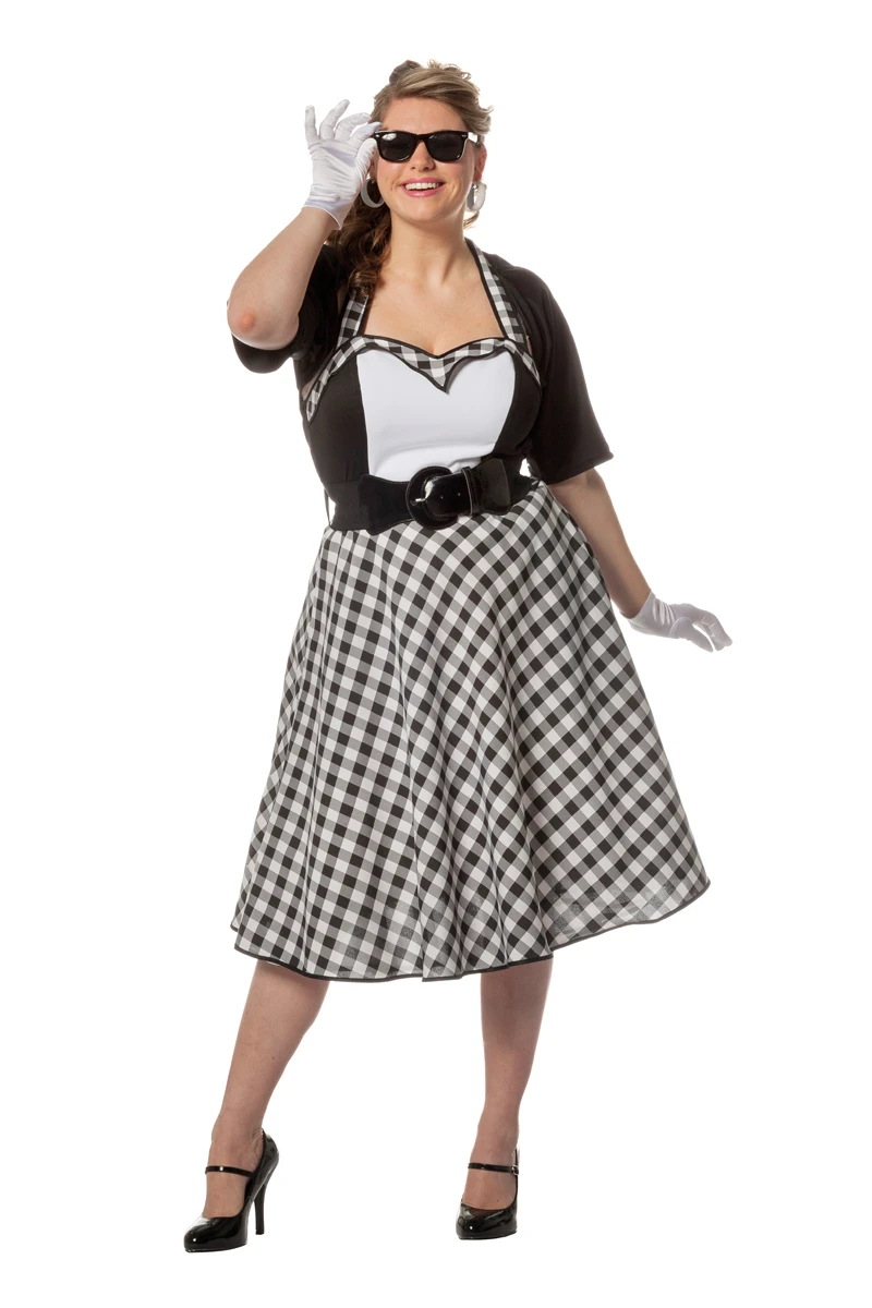 Rock en Roll jurk zwart/wit voor dames van 100% polyester word geleverd met jurk, jasje en riem.