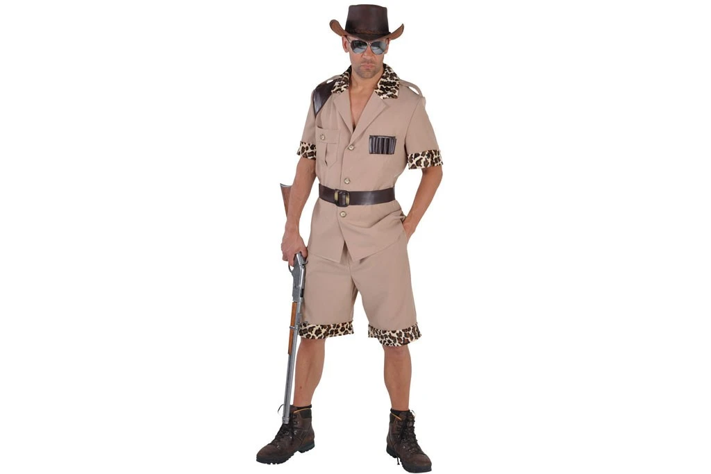 Safari pak voor heren, bestaande uit een shirt, broek en centuur.