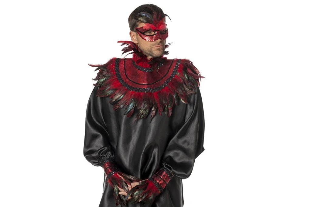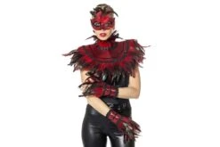 Mooie set met venetiaans masker, bijpassende kraag en handschoenen in de kleur rood.