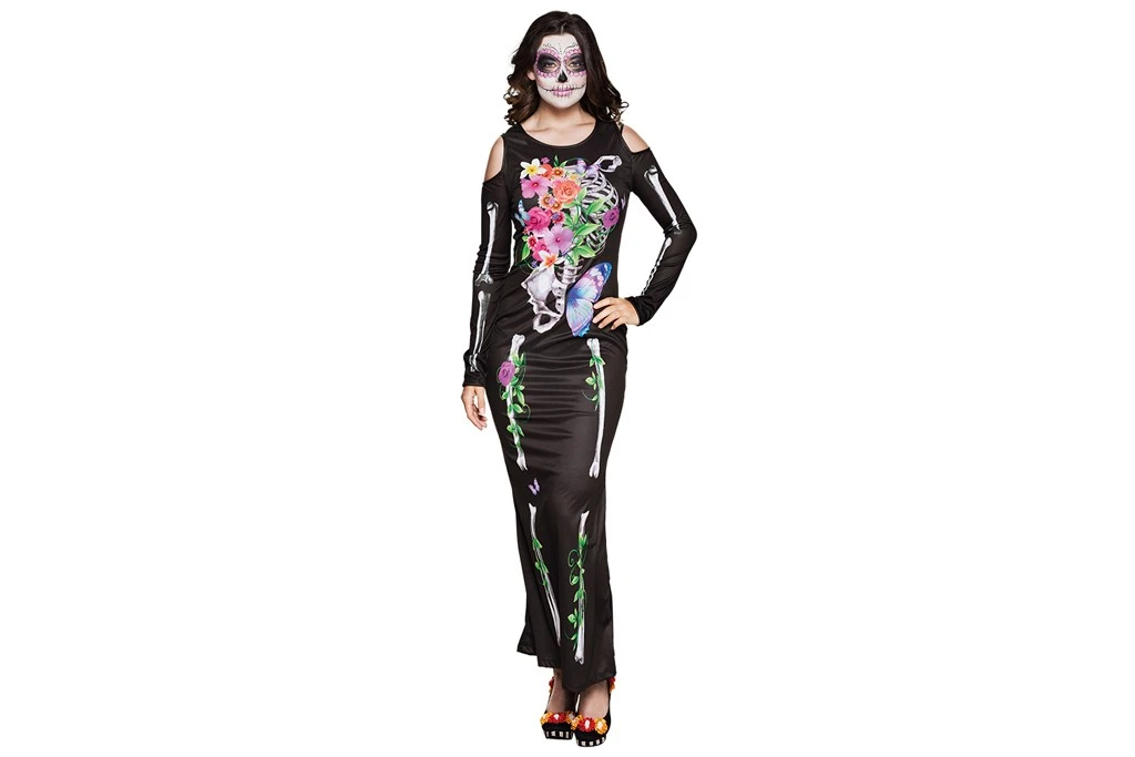 Skelet kostuum met bloemenprint.
