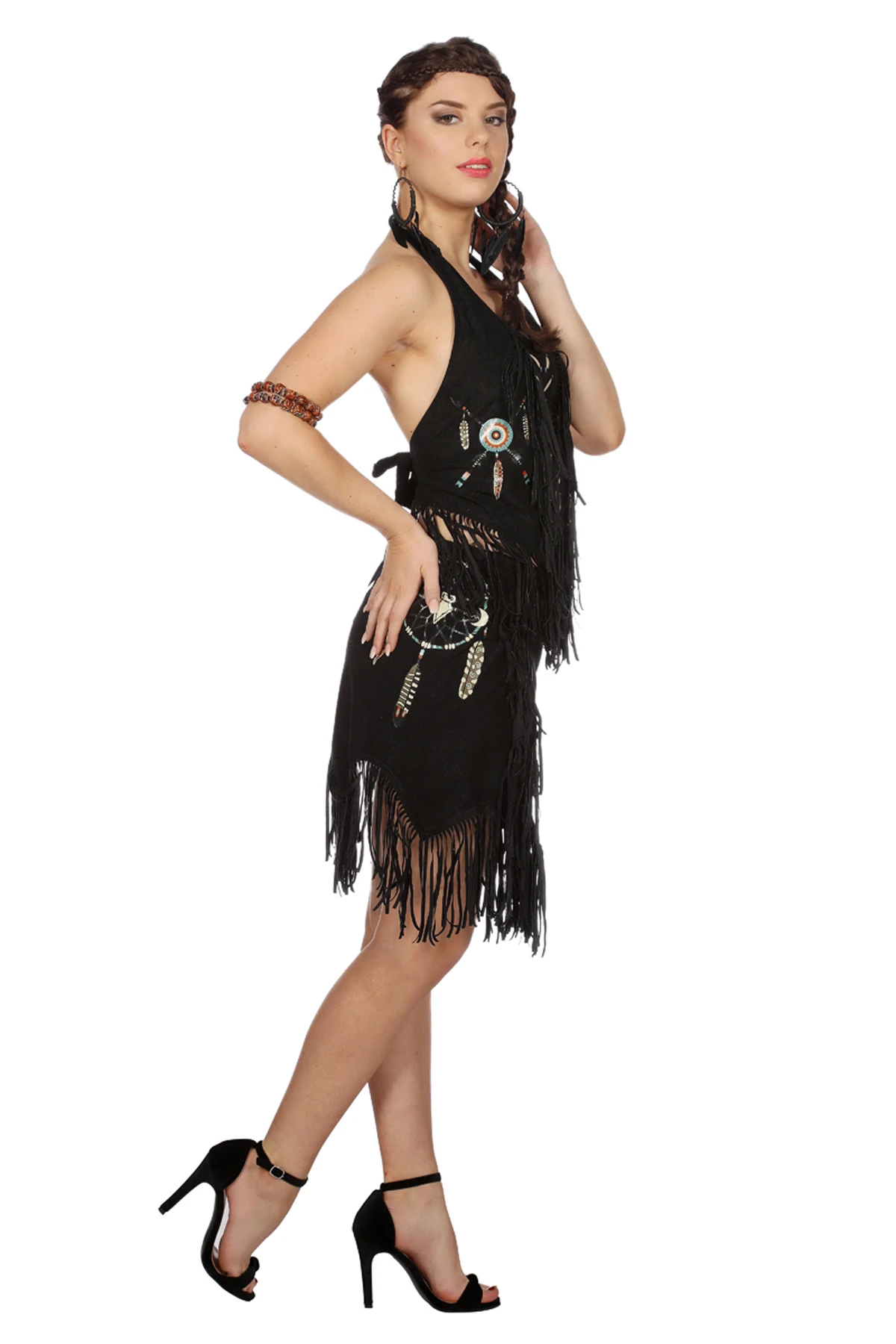 One size top of rok, leuk voor indianenthema of hippie festival. Ook verkrijgbaar in beige.