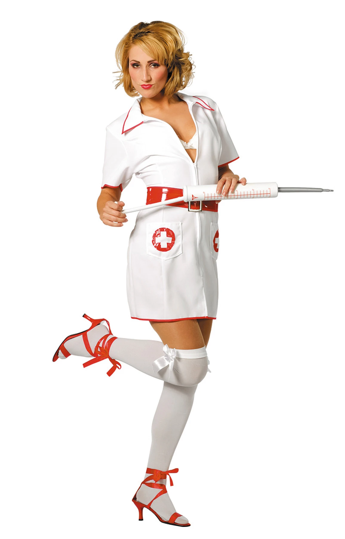 Wit verpleegster jurkje met korte mouwen.