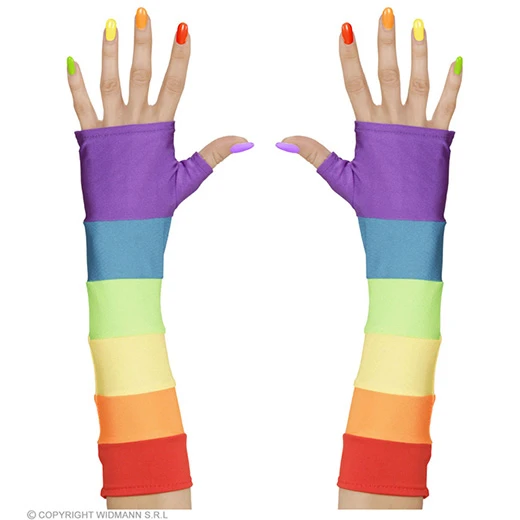 vingerloze handschoenen satijn, regenboog kleuren