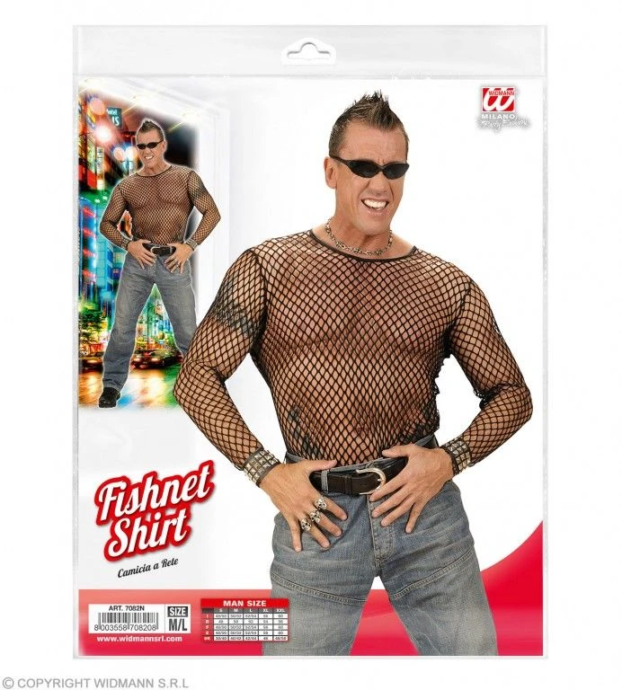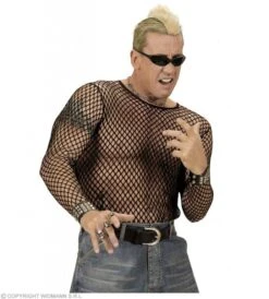 Visnetshirt zwart voor heren, in maat M/L (52)