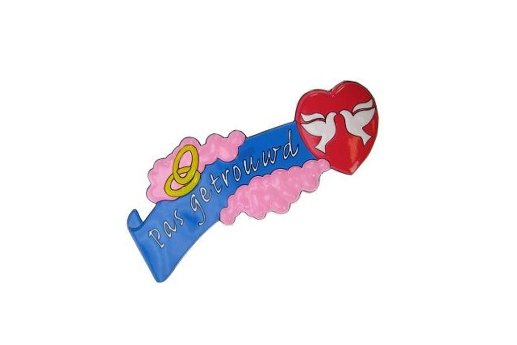 Wanddecoratie pas getrouwd. Afm. 58x27cm.