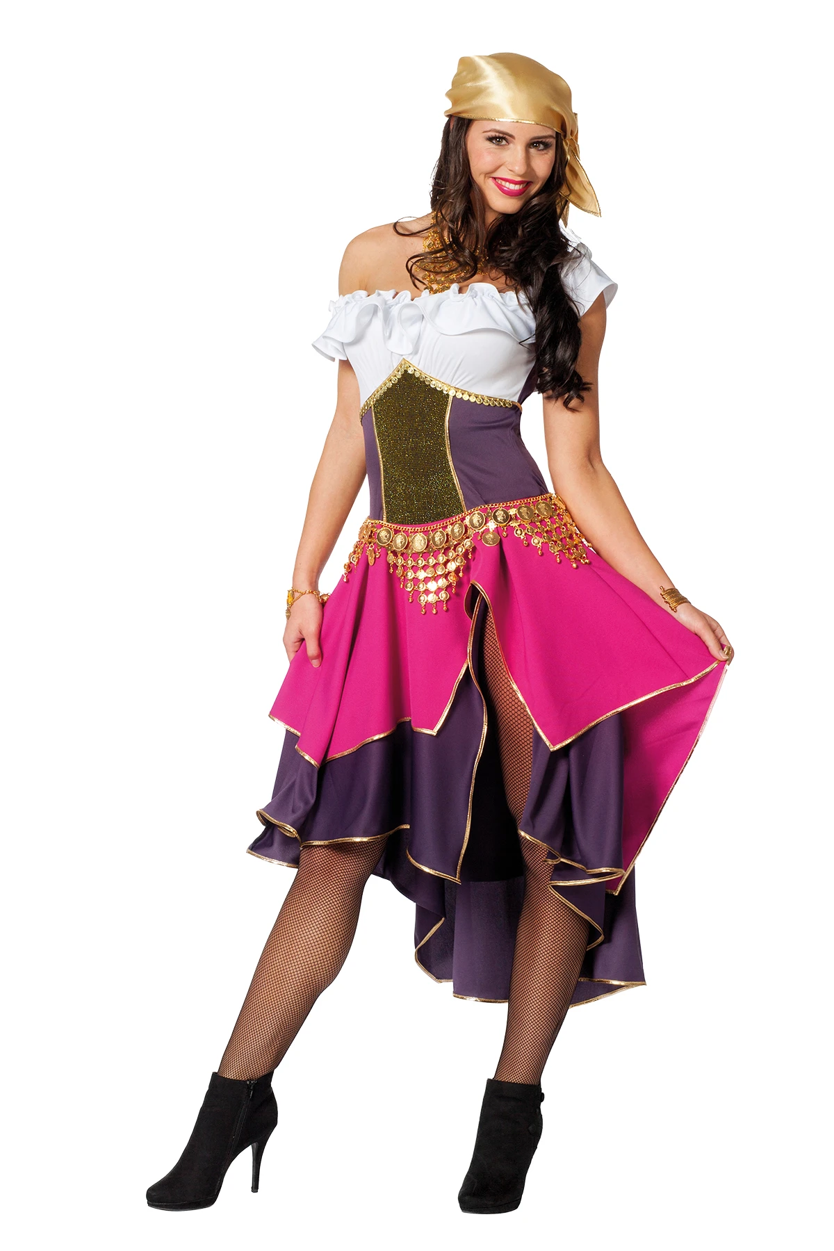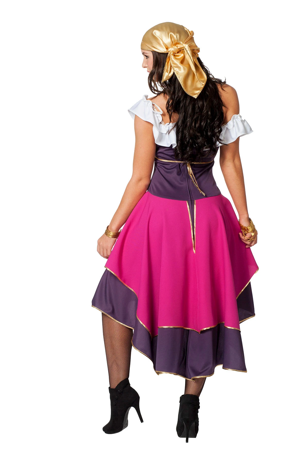 Mooie roze met paarse off shoulder jurk, incl hoofddoekje.